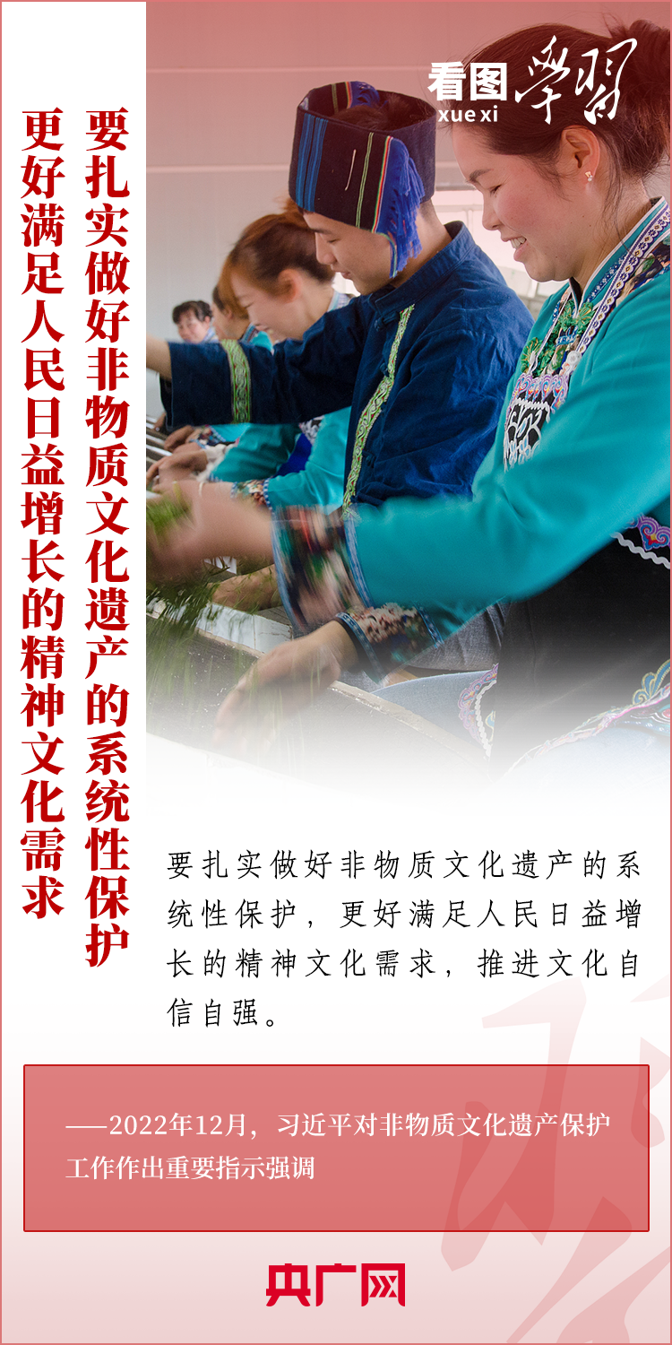 非物質文化遺產是中華優(yōu)秀傳統(tǒng)文化的重要組成部分,是中華文明綿延傳承的生動見證。習近平總書記高度重視推動中華優(yōu)秀傳統(tǒng)文化的創(chuàng)造性轉化、創(chuàng)新性發(fā)展,多次對非物質文化遺產保護工作作出重要指示,強調要扎實做好非物質文化遺產的系統(tǒng)性保護,推動中華文化更好走向世界。
