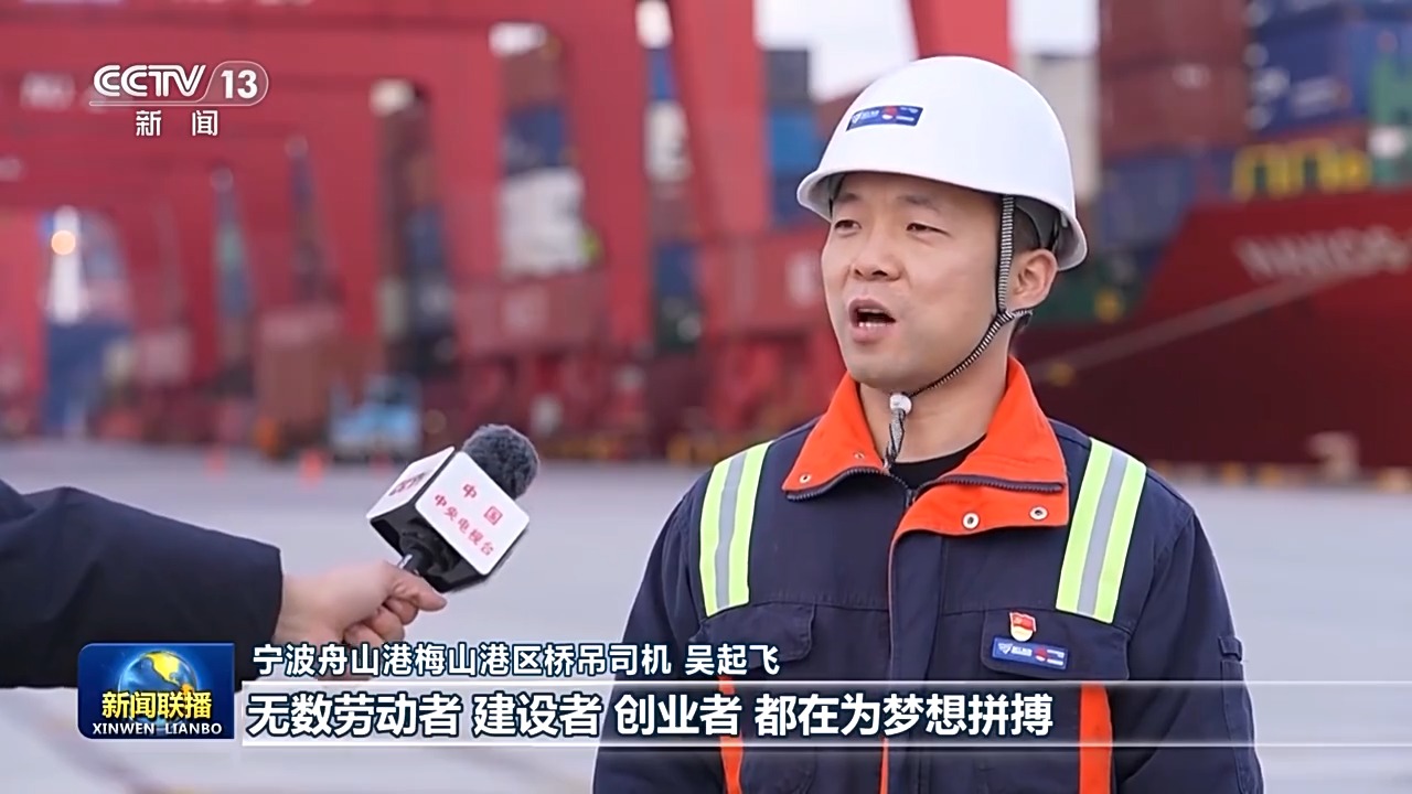 寧波舟山港梅山港區(qū)橋吊司機(jī) 吳起飛:習(xí)近平總書記在2025年新年賀詞里說(shuō),無(wú)數(shù)勞動(dòng)者、建設(shè)者、創(chuàng)業(yè)者都在為夢(mèng)想拼搏。2024年,我們實(shí)現(xiàn)了寧波舟山港梅山港區(qū)年集裝箱吞吐量超一千萬(wàn)的目標(biāo)。2025年,和團(tuán)隊(duì)的小伙伴們一起,把智慧港口建設(shè)好,為海港的發(fā)展貢獻(xiàn)力量。
