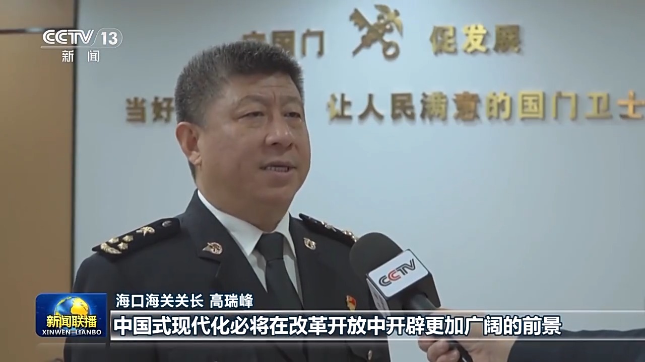 ??诤jP(guān)關(guān)長(zhǎng) 高瑞峰:習(xí)近平主席在新年賀詞中指出,中國(guó)式現(xiàn)代化必將在改革開放中開辟更加廣闊的前景。今年,海南自貿(mào)港將實(shí)現(xiàn)封關(guān)運(yùn)作。我們要始終沿著習(xí)近平總書記指引的方向前進(jìn),不斷深化海關(guān)監(jiān)管制度集成創(chuàng)新,努力把海南自由貿(mào)易港打造成為引領(lǐng)我國(guó)新時(shí)代對(duì)外開放的重要門戶。