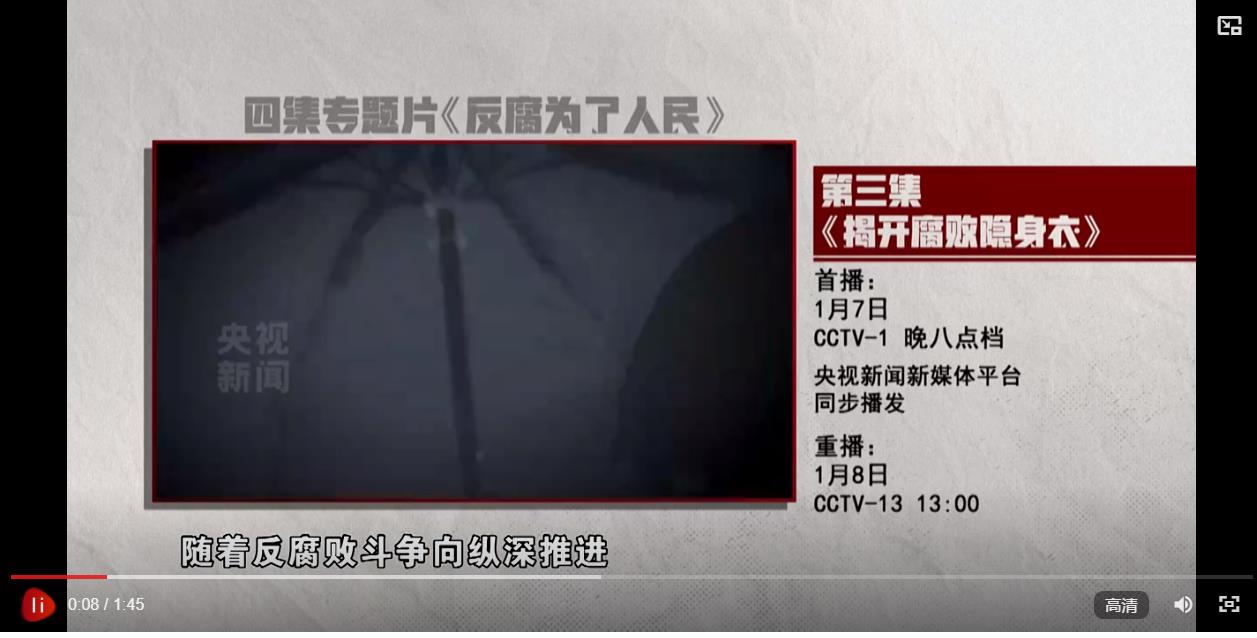 【解說詞】《反腐 為了人民》第三集《揭開腐敗隱身衣》,敬請關(guān)注。