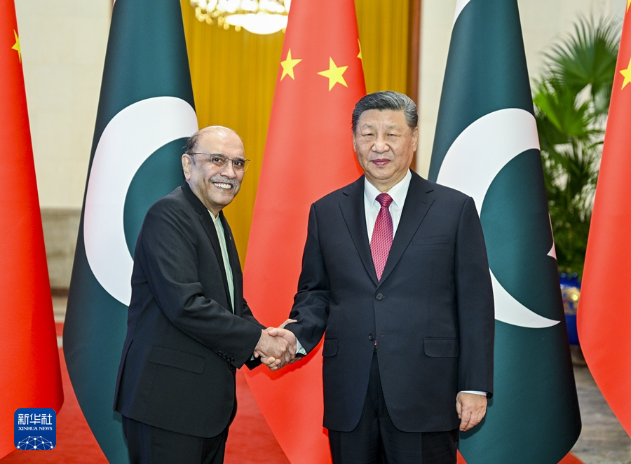 2月5日下午,國家主席習(xí)近平在北京人民大會堂同來華進(jìn)行國事訪問的巴基斯坦總統(tǒng)扎爾達(dá)里舉行會談。這是習(xí)近平同扎爾達(dá)里握手。新華社記者 李學(xué)仁 攝