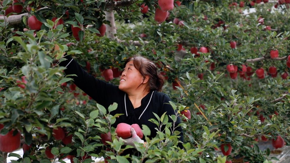 在甘肅天水,豐收時(shí)節(jié)的果實(shí)綴滿枝頭。火紅的蘋果,連接著鄉(xiāng)村全面振興的美好未來(lái)。