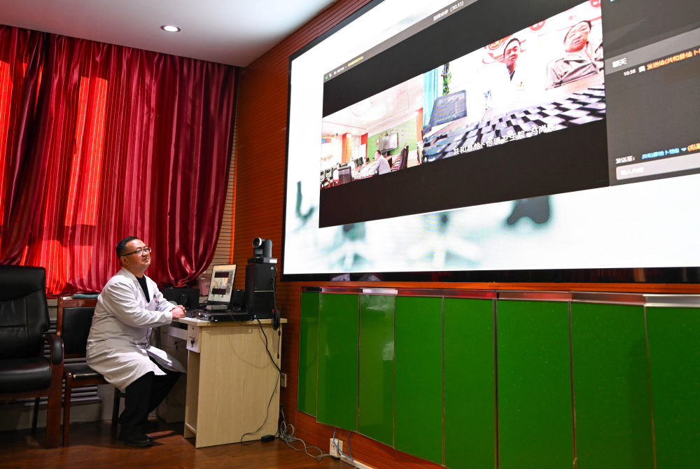 2024年12月17日,在青海省海南藏族自治州共和縣中醫(yī)院,醫(yī)生與鄉(xiāng)鎮(zhèn)衛(wèi)生院連線(xiàn)進(jìn)行遠(yuǎn)程會(huì)診。