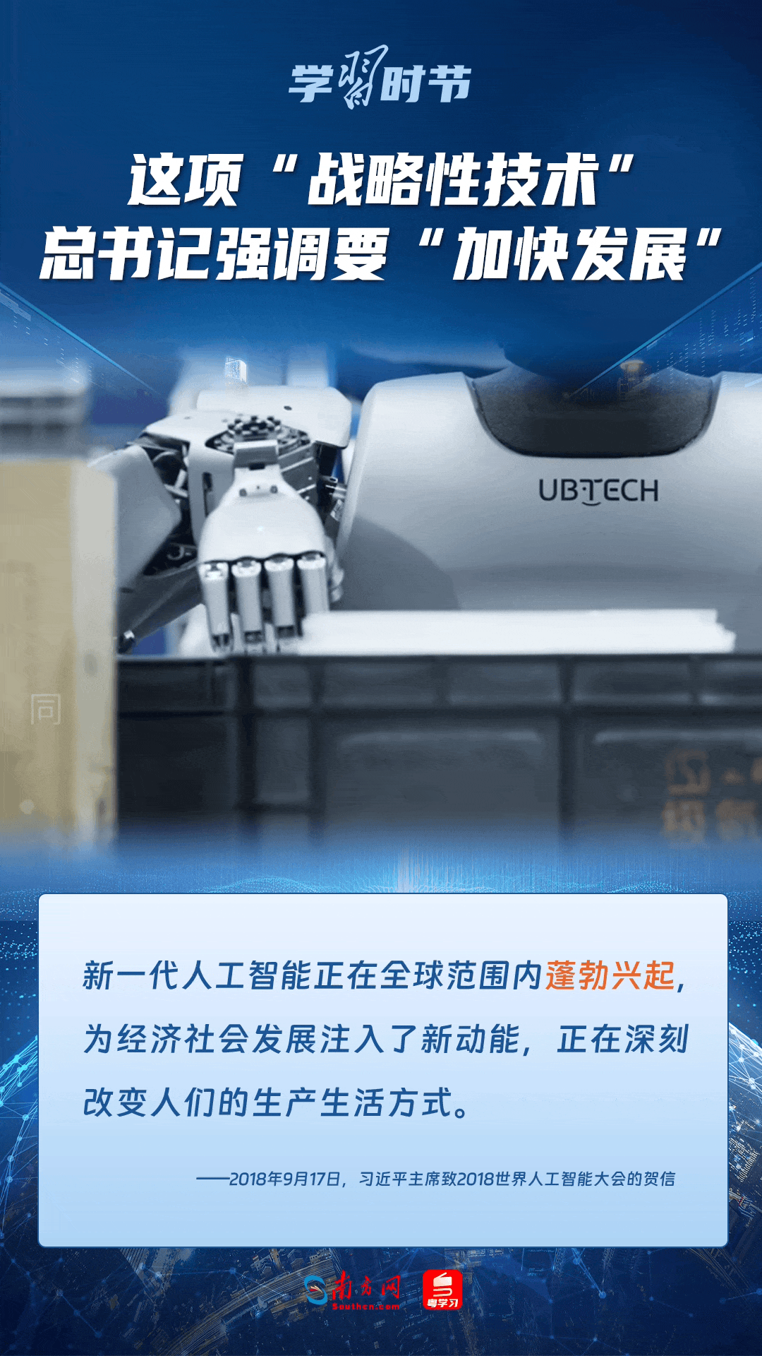 人工智能是引領(lǐng)科技革命和產(chǎn)業(yè)變革的戰(zhàn)略性技術(shù)。黨的十八大以來,習近平總書記把創(chuàng)新擺在國家發(fā)展全局的核心位置,高度重視人工智能發(fā)展,多次談及這項“戰(zhàn)略性技術(shù)”,強調(diào)要“加快發(fā)展”,為人工智能賦能千行百業(yè)指明方向。讓我們一起來學習總書記關(guān)于人工智能的重要論述!