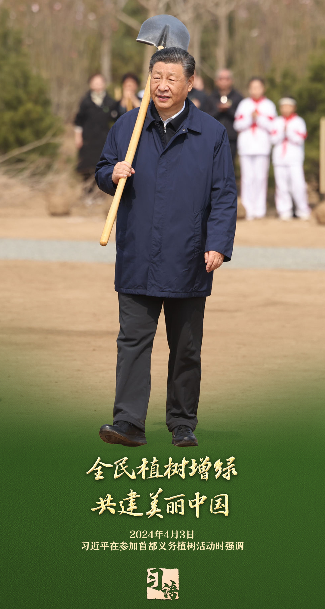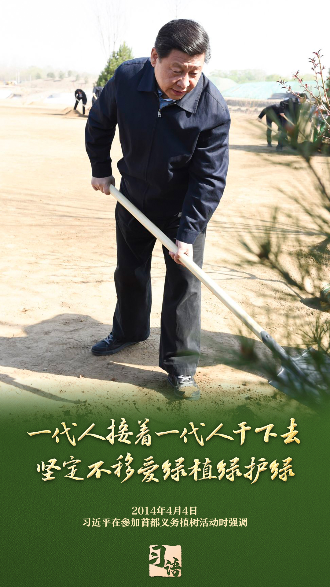“植樹(shù)造林是一件很有意義的事情,是一項(xiàng)功在當(dāng)代、利在千秋的崇高事業(yè),要一以貫之、持續(xù)做下去。”自2013年以來(lái)的13個(gè)春天里,無(wú)論晴雨,習(xí)近平總書(shū)記都會(huì)拿起鐵鍬,與干部群眾一起參加首都義務(wù)植樹(shù)活動(dòng)。鏟土造坑、培土圍堰、提水澆灌,總書(shū)記身體力行種下綠色的希望,對(duì)擴(kuò)綠興綠護(hù)綠、建設(shè)美麗中國(guó)提出明確要求。一起學(xué)習(xí)。