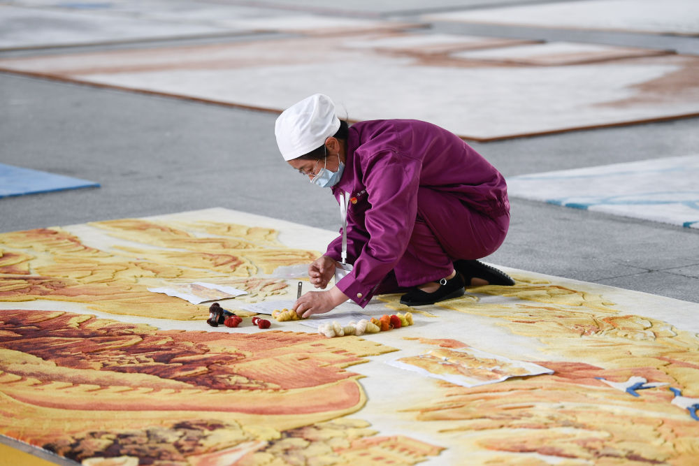 2019年,經(jīng)人介紹,張淑菊到圣源地毯工作。剛來的時(shí)候,她心里沒底:“以前干的凈是些粗活,咋練這‘繡花’功夫?”但經(jīng)過公司的技能培訓(xùn),她很快熟悉了這項(xiàng)工作,一干就是6年多。如今,她每月工資有5000多元?!百I房了,女兒也上大學(xué)了?!睆埵缇照f,這些都是來這里工作后的變化,“等交房了,我要在客廳擺一張自己制作的藏毯”。