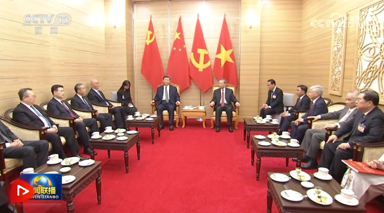 習(xí)近平指出,這次訪問時間雖短,但活動豐富、成果豐碩。雙方重申共同壯大世界社會主義事業(yè)的政治意愿,都期待朝著“六個更”總體目標全面推進兩國戰(zhàn)略合作,都表示抵御外部風險挑戰(zhàn),維護地區(qū)和平穩(wěn)定和國際公平正義。我對中越關(guān)系發(fā)展前景充滿信心。雙方要全面落實這次訪問成果,持續(xù)推進中越命運共同體建設(shè)。