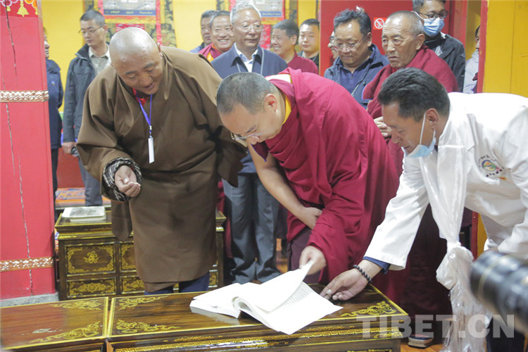 醫(yī)藥的發(fā)展關鍵是人才,十一世班禪首先來到了博物館內的專家門診室和學術講座廳。在學術講座廳內,十一世班禪俯身拿起桌上學員的筆記認真地翻閱。隨后,十一世班禪進入藥材廳、藏醫(yī)器械展廳、藥材標本室、羌塘名醫(yī)傳承介紹廳、藏醫(yī)古跡醫(yī)典廳、醫(yī)算唐卡廳、天文歷算廳等進行了參觀調研。嘉黎縣藏醫(yī)院專家向十一世班禪詳細介紹了嘉黎縣藏醫(yī)藥歷史文化博物館建館情況及展示的各類文物級珍貴展品。