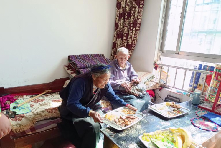 圖為行動(dòng)不便的老人在家吃“愛心”午餐