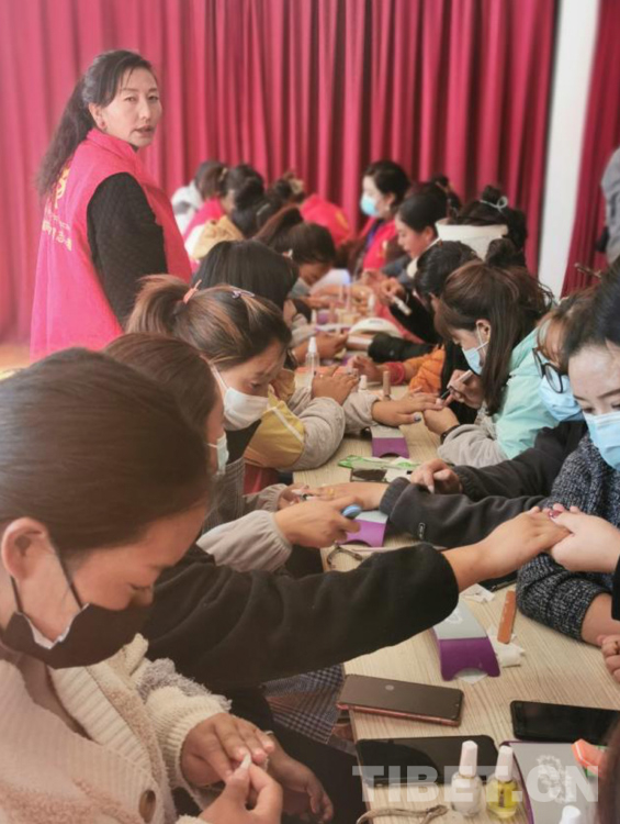 圖為恩惠苑社區(qū)的部分需要就業(yè)婦女在培訓(xùn)老師指導(dǎo)下進(jìn)行美甲實(shí)操