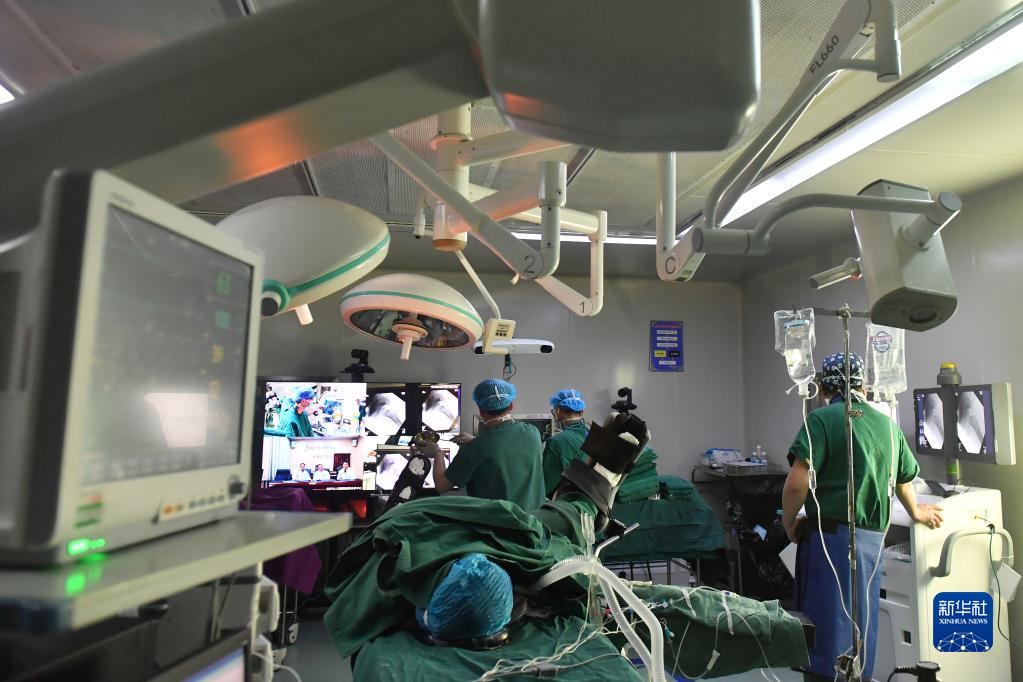 拉薩市人民醫(yī)院骨科醫(yī)生在北京積水潭醫(yī)院專家遠(yuǎn)程指導(dǎo)下使用骨科機(jī)器人開(kāi)展骨科手術(shù)(2021年4月19日攝)。新華社記者 孫瑞博 攝