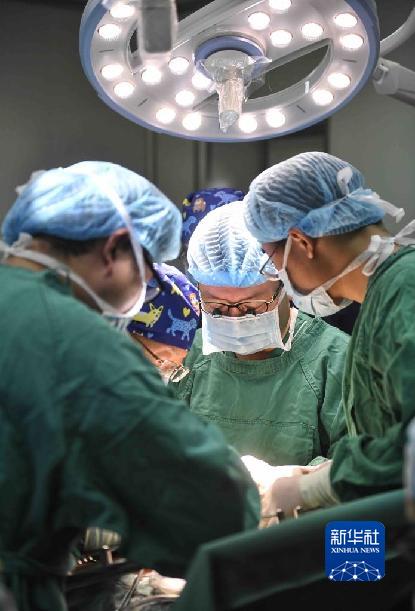2020年1月16日,在甘孜州人民醫(yī)院,王文濤(左)進行“體外肝切除聯(lián)合自體肝移植手術(shù)”。新華社記者 劉坤 攝
