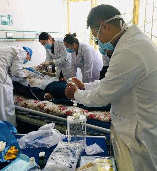 手術(shù)不算復(fù)雜,但崗巴縣醫(yī)護人員相關(guān)操作經(jīng)驗相對缺乏,高原又是氣胸的誘發(fā)因素之一,所以該技術(shù)有很強的適應(yīng)性,在關(guān)鍵時刻能及時挽救患者的生命。因此,醫(yī)療隊在手術(shù)過程中還注意承擔(dān)起對當(dāng)?shù)蒯t(yī)生的教學(xué)工作。醫(yī)療隊在手術(shù)過程中仔細講解注意點,包括切開置管的位置,如何最大程度避免血管損傷、導(dǎo)管固定、觀察引流瓶情況等,耐心指導(dǎo)當(dāng)?shù)蒯t(yī)生幫助他們掌握相關(guān)技術(shù),即便日后援藏專家不在也能夠獨立開展,將“輸血”轉(zhuǎn)化為“造血”。