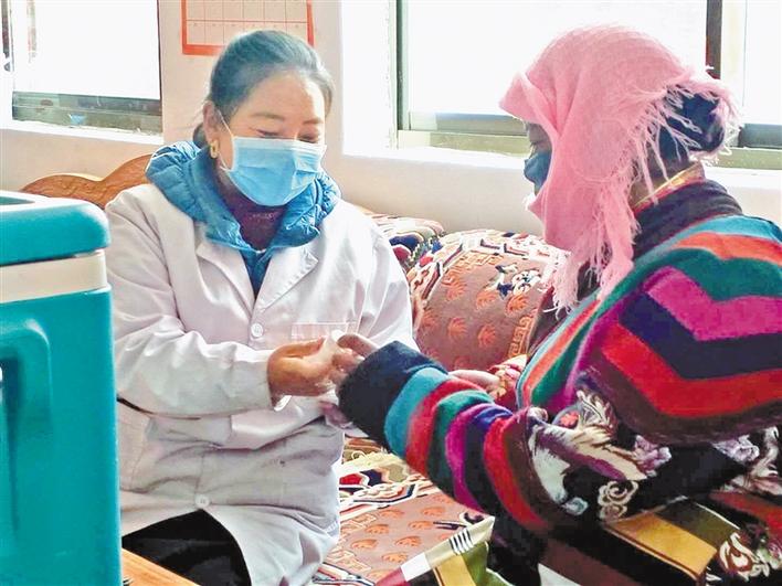 申扎鎮(zhèn)醫(yī)務(wù)人員指導(dǎo)孕婦服用葉酸。本報(bào)記者 張宇 曲珍 攝