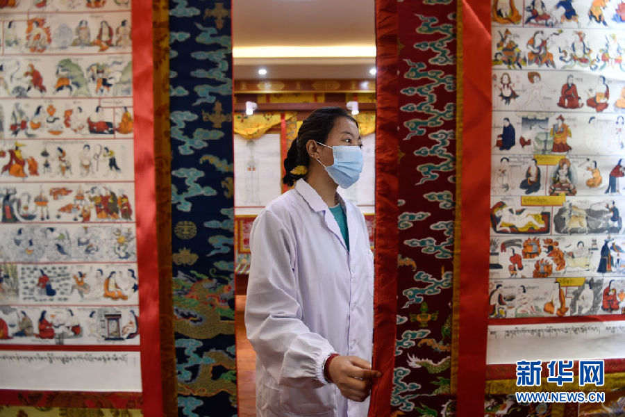 3月16日,在果洛藏族自治州職業(yè)技術(shù)學(xué)校,2020級藏醫(yī)醫(yī)療與藏藥專業(yè)學(xué)生才讓措通過藏醫(yī)典籍唐卡學(xué)習(xí)。新華社記者 張龍 攝