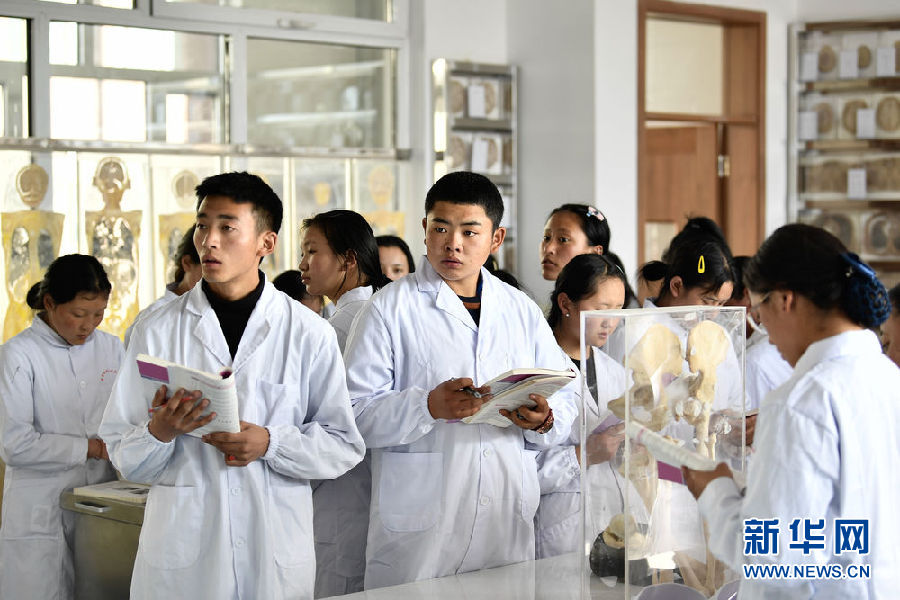 3月16日,在果洛藏族自治州職業(yè)技術(shù)學(xué)校,2020級護(hù)理專業(yè)學(xué)生在上課。新華社記者 張龍 攝
