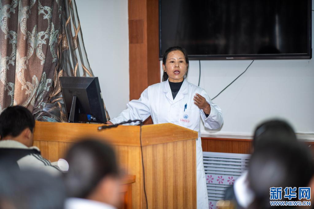 西藏藏醫(yī)藥大學(xué)色珍老師在給19級(jí)本科生教授方劑學(xué)課程(3月23日攝)。新華社記者 旦增尼瑪曲珠 攝