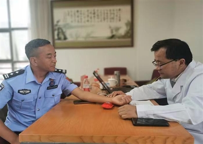 圖為巡診專家正在對(duì)民警進(jìn)行一對(duì)一診斷。拉薩出入境邊防檢查站供圖