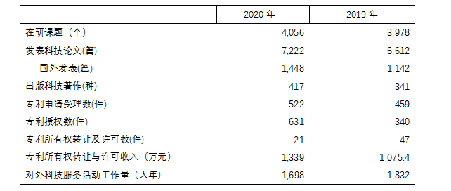 2020年全國中醫(yī)藥科研機(jī)構(gòu)在研課題共4,056個,比2019年的3,978個增加了78個,增幅2.0%。發(fā)表科技論文7,222篇,其中國外發(fā)表1,448篇,出版科技著作417種。比2019年全國中醫(yī)藥科研機(jī)構(gòu)發(fā)表的6,612篇科技論文增加了610篇,增幅為9.2%。