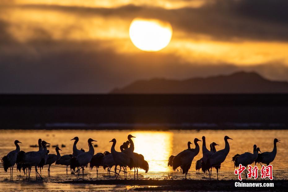 2月17日,西藏拉薩市林周縣黑頸鶴保護區(qū)內(nèi),黑頸鶴翩躚起舞、分外美麗。中新社記者 何蓬磊 攝