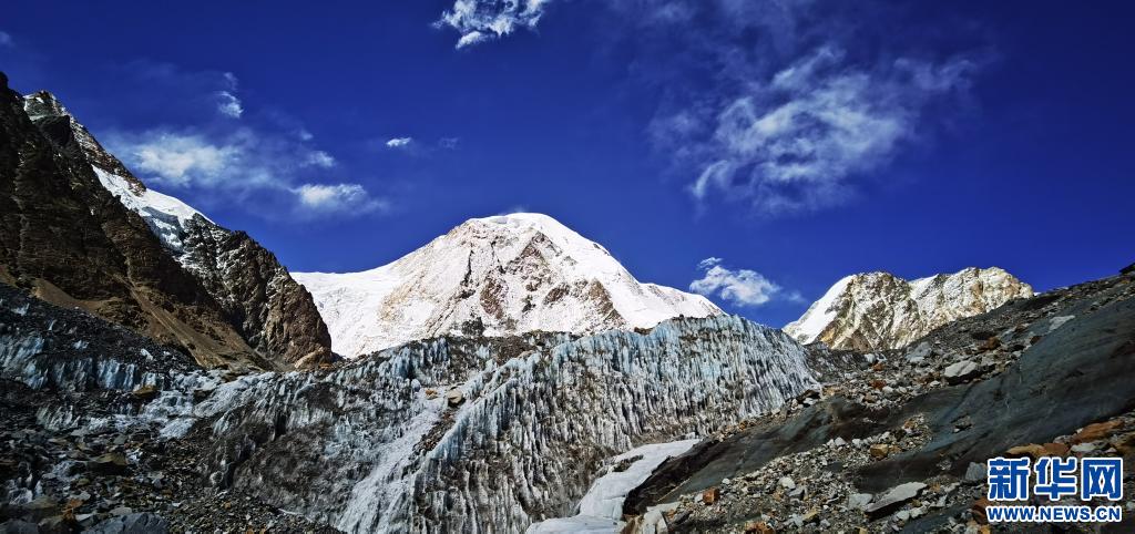 窮母崗日峰海拔7048米,位于西藏自治區(qū)中部的尼木縣境內(nèi)。窮母崗日峰腳下存有大面積冰川,形成壯麗的冰川地貌,在陽(yáng)光的照射下發(fā)出瑰麗的光彩。