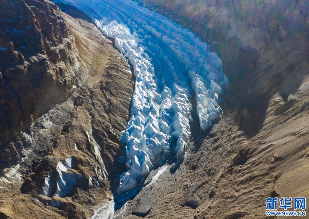 鳥瞰曲登尼瑪冰川(11月27日攝,無人機(jī)照片)。新華社記者 格桑邊覺 攝