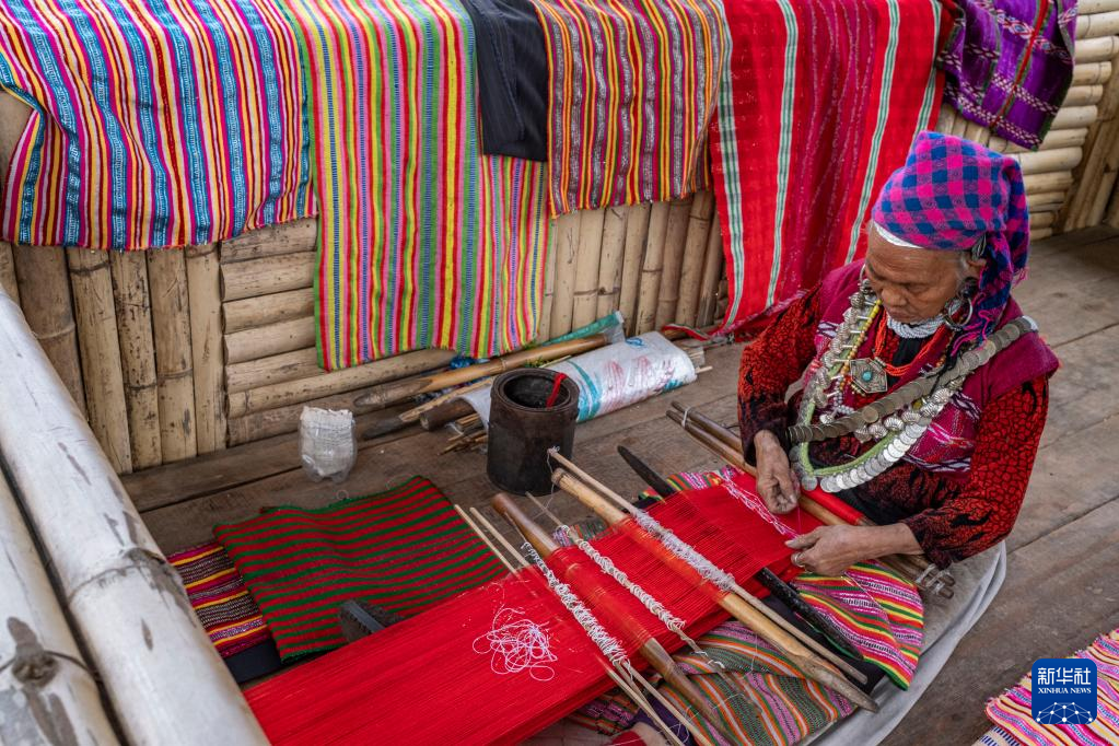 今年72歲的本央老人,是僜人服飾制作技藝西藏自治區(qū)級非遺傳承人。在西藏林芝市察隅縣沙瓊村,老人身著傳統(tǒng)的僜人服飾,在自家的涼亭里編織布料。