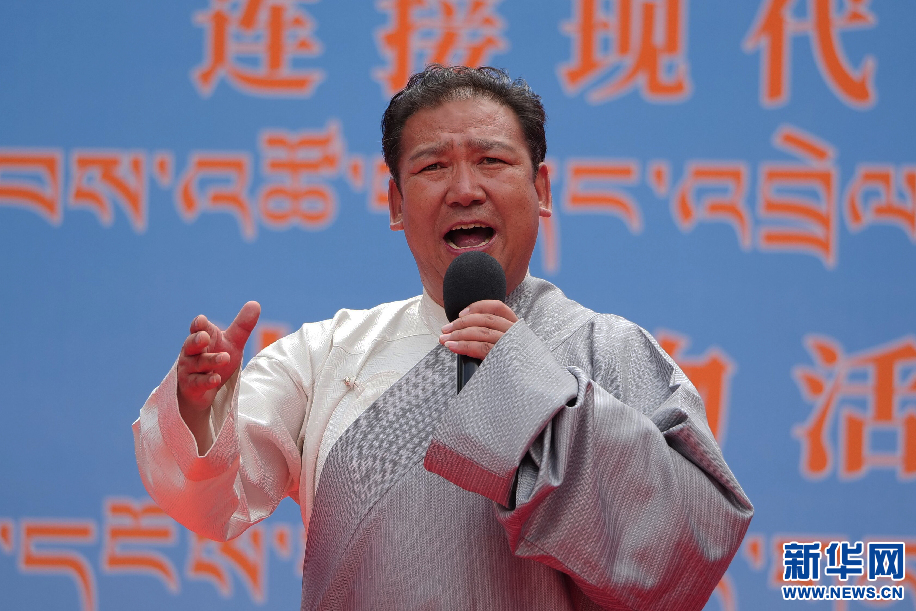 6月11日,著名藏戲表演藝術(shù)家邊點(diǎn)旺久在演唱傳統(tǒng)藏戲唱腔。新華網(wǎng) 旦增努布攝