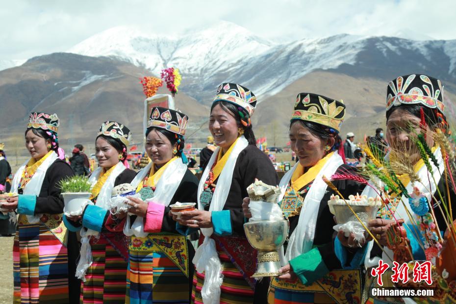 圖為拉薩市林周縣朱加村,村民穿著節(jié)日盛裝舉行傳統(tǒng)春耕儀式。林周融媒 供圖