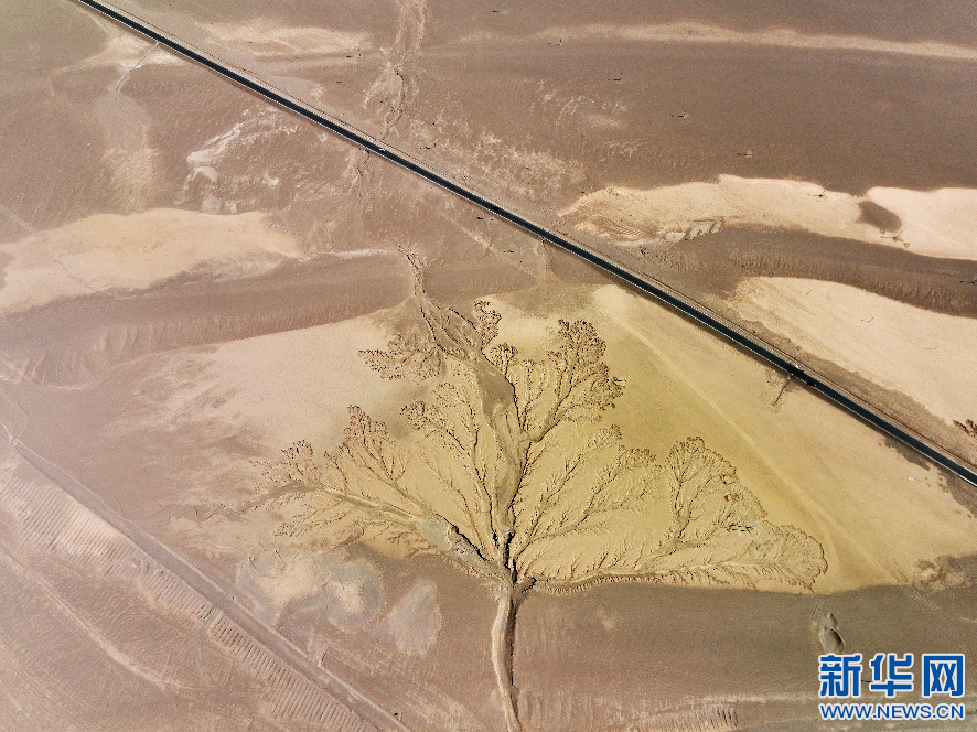 這是4月8日拍攝的位于阿里地區(qū)改則縣的“大地之樹(shù)”景觀(無(wú)人機(jī)照片)。 新華網(wǎng)發(fā) 曹枝清 攝