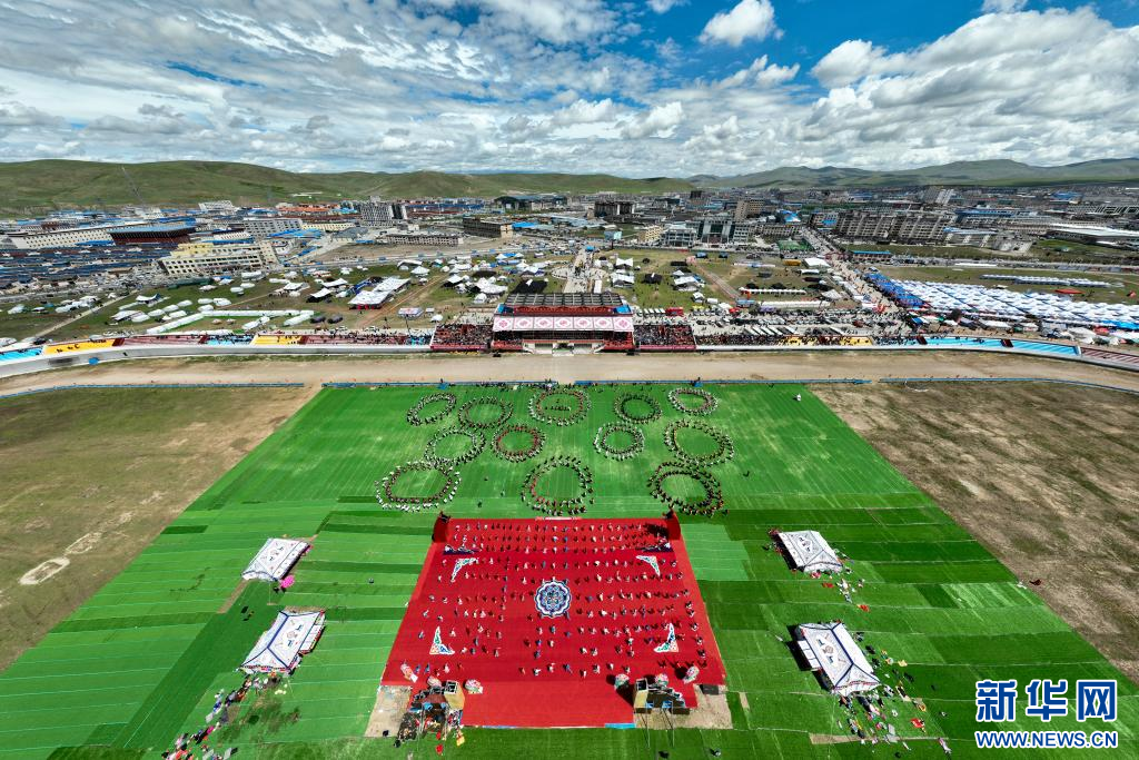 8月10日,演員在開幕式上表演舞蹈(無人機照片)。新華網(wǎng) 旦增努布 攝