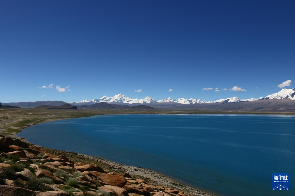 從佩枯錯旁遠眺希夏邦馬峰(9月2日攝)。新華社記者 陳澤鵬 攝