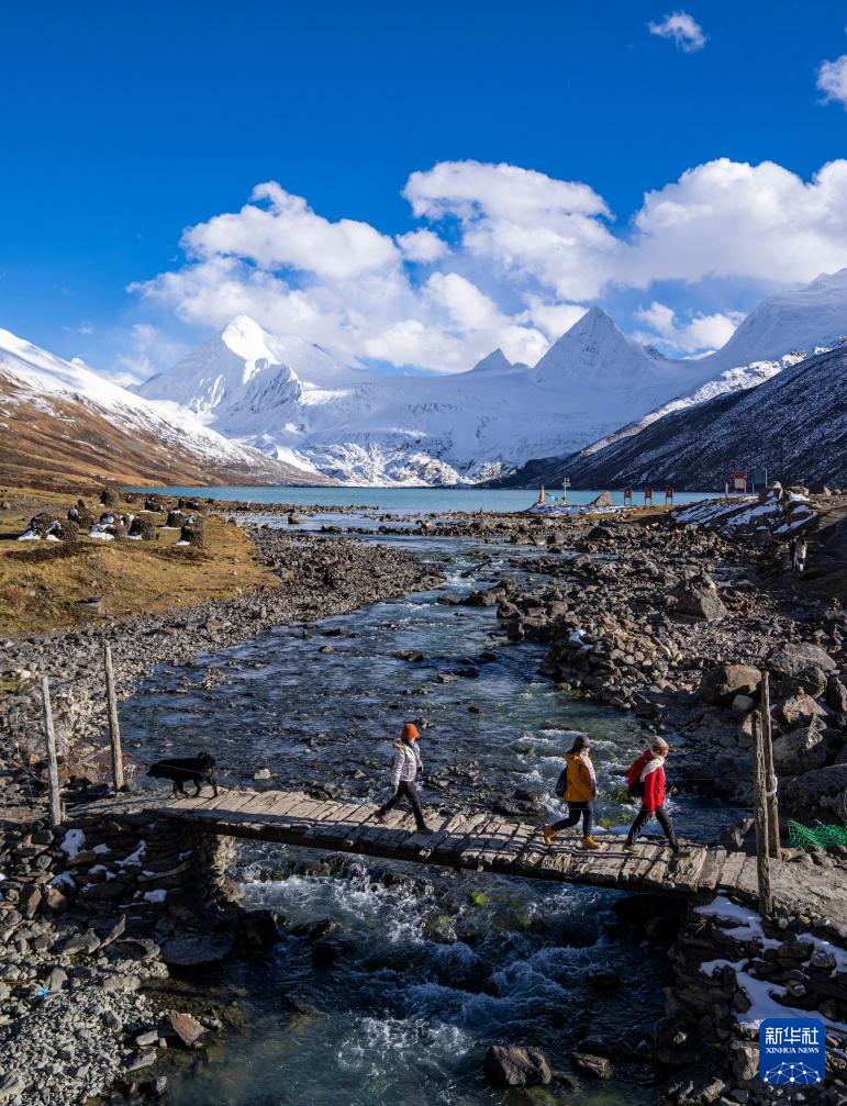 游客徒步經過薩普雪山腳下的木橋(10月28日攝)。新華社記者 孫非 攝