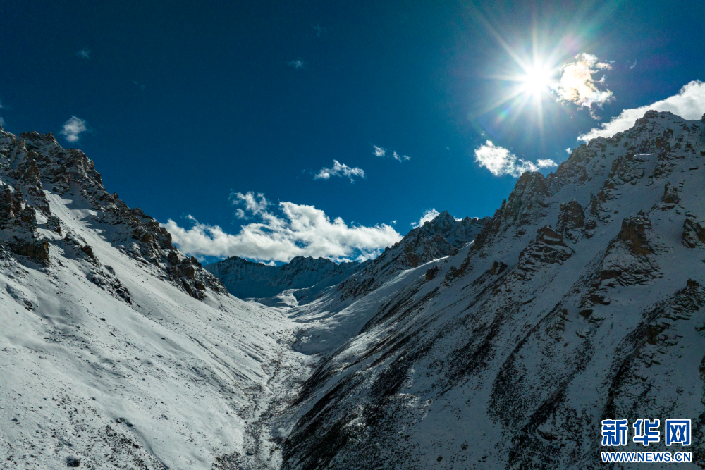 12月10日,從嘉乃玉錯湖邊拍攝的雪山(無人機照片)。新華網(wǎng) 旦增努布 攝