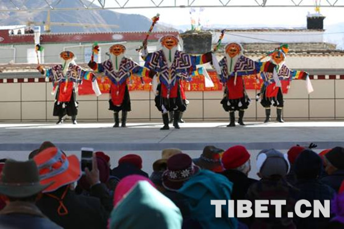 臺(tái)上,藏戲表演、男女聲獨(dú)唱、舞蹈等群眾喜聞樂見的節(jié)目讓演員們表演得淋漓盡致,精彩的節(jié)目使得臺(tái)下觀眾發(fā)出陣陣歡笑,整個(gè)院子響起了經(jīng)久不息的掌聲。