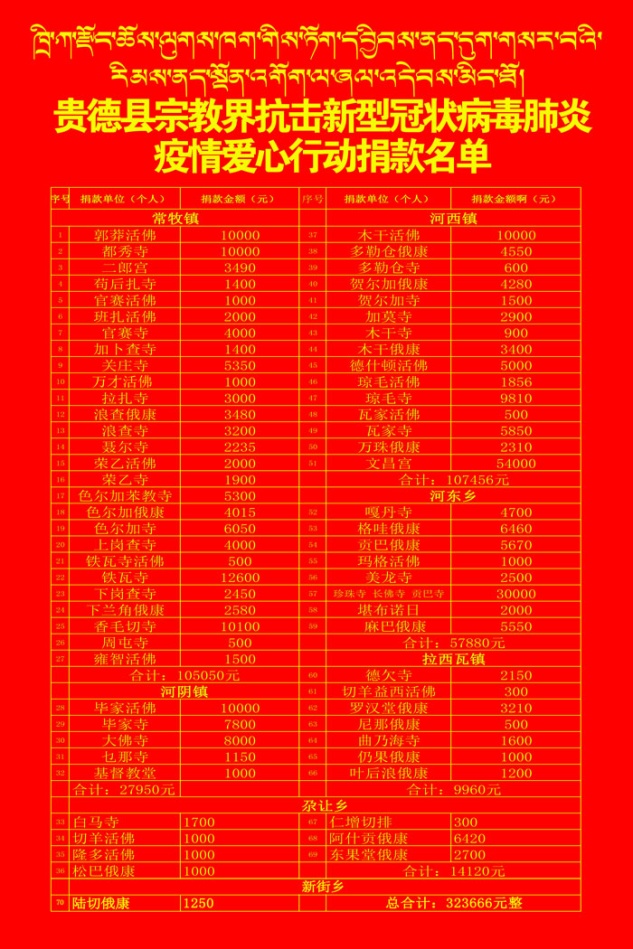 圖為貴德縣佛教界捐款名單