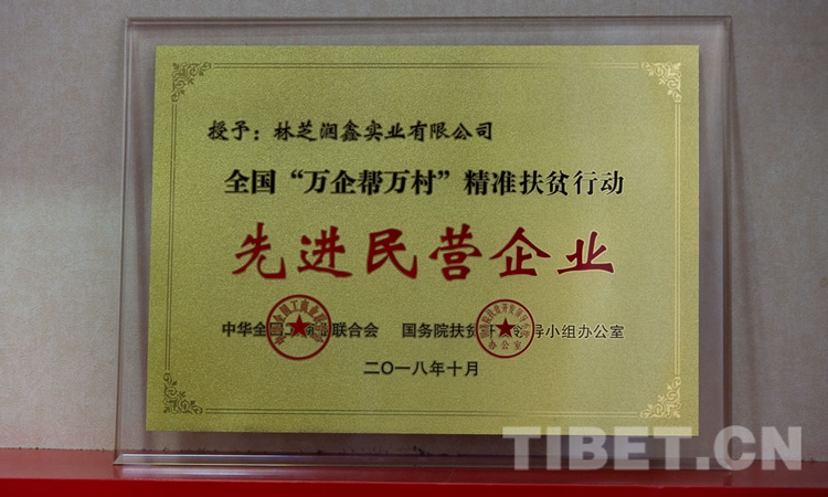 圖為潤(rùn)鑫公司獲得的“全國(guó)‘萬(wàn)企幫萬(wàn)村’精準(zhǔn)扶貧行動(dòng)先進(jìn)民營(yíng)企業(yè)”稱(chēng)號(hào) 攝影:趙耀