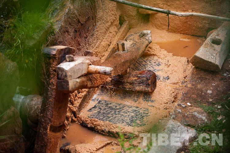 圖為吞達村藏香制作園內(nèi)正在研磨的水磨 攝影:趙耀