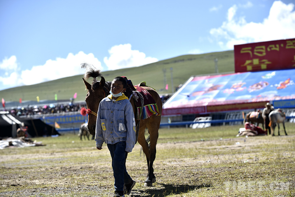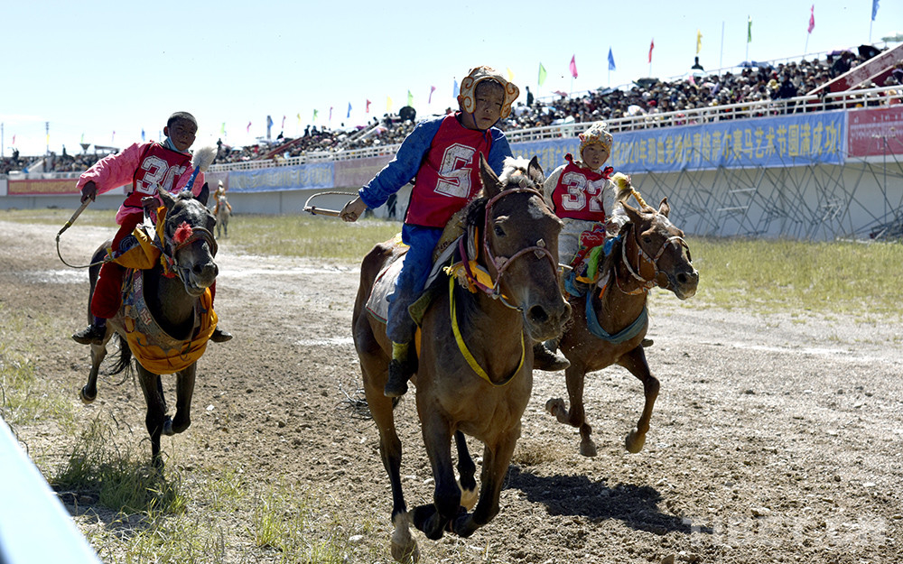 圖為西藏自治區(qū)那曲市2020羌塘恰青格薩爾賽馬藝術(shù)節(jié)場內(nèi)速度賽馬比賽現(xiàn)場,一位少年?duì)恐R兒 攝影:王媛媛