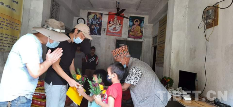 Aama Ko Maya孤兒院小朋友們向中國(guó)西藏自治區(qū)農(nóng)牧科學(xué)院援尼泊爾北部山區(qū)農(nóng)業(yè)項(xiàng)目組專(zhuān)家獻(xiàn)花以表示感謝
