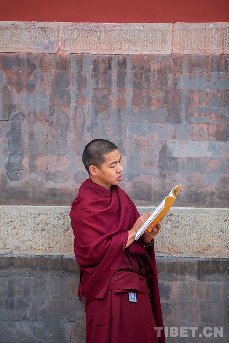 圖為即將參加2020年藏傳佛教第十六屆“拓然巴”高級學銜畢業(yè)考試辯經(jīng)考試的學僧專注誦經(jīng) 攝影:許娜
