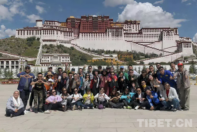 這是中國評劇院藝術(shù)家在拉薩演出結(jié)束后,來到布達(dá)拉宮前合影留念(唐召明提供,2018年9月19日攝)