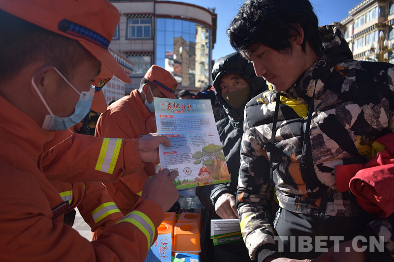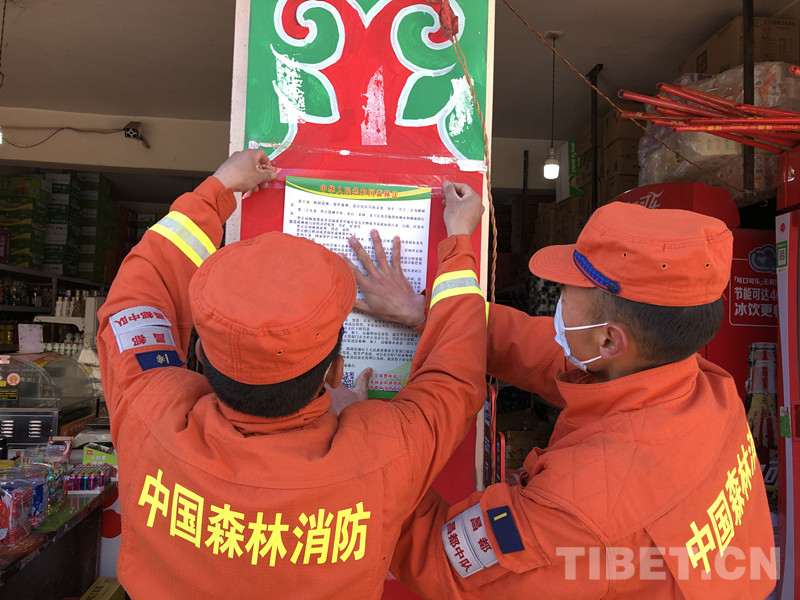 西藏森林消防總隊在西藏自治區(qū)6市17縣采取防火宣傳小分隊進社區(qū)、進林區(qū)、進企業(yè)、進村莊、進農(nóng)戶的“五進”形式,以重點林區(qū)、人員密集區(qū)為重點,以宣傳強意識、設卡堵火種、檢查除隱患、遇火早撲滅為任務在重點地段、重要林區(qū)、景區(qū)、入山路口懸掛防火標語、設置火源檢查站。出動100余名指戰(zhàn)員深入重點林區(qū)、景區(qū)實施靠前駐防,通過向過往群眾、游客講解森林火災常識、體驗滅火裝備等方式,做好節(jié)日期間森林防火工作。