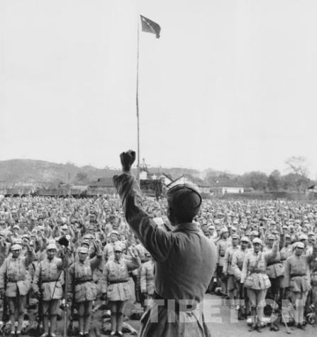 圖為1950年3月,十八軍在四川樂山舉行進(jìn)軍西藏誓師大會。