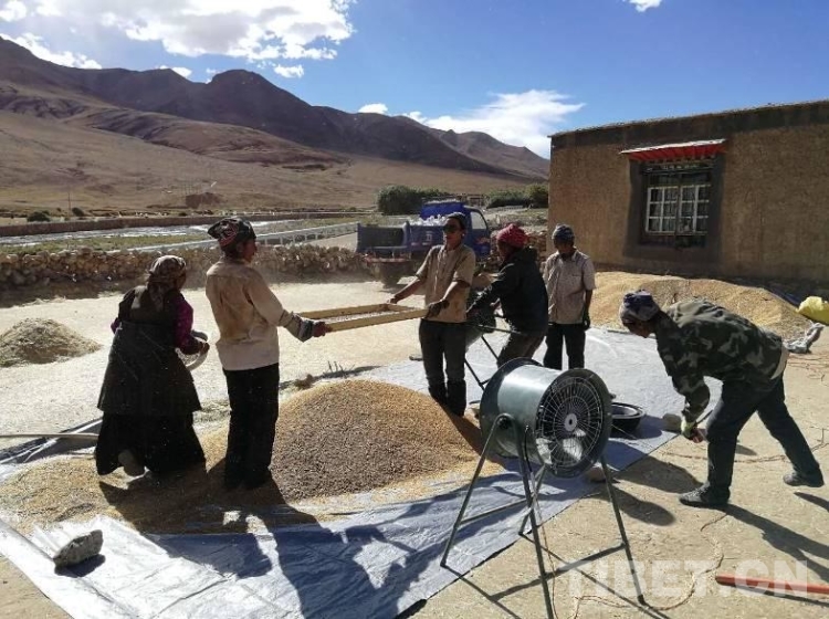 工作隊(duì)根據(jù)在前期深入群眾家中和田間地頭了解到的“孤困寡”等人群在秋收中存在勞動(dòng)力緊缺等問(wèn)題,號(hào)召全體駐村隊(duì)員和村黨員干部組成青稞秋收黨員志愿服務(wù)隊(duì)自2017年9月13日起,對(duì)村孤寡戶、缺乏勞動(dòng)力戶及特困戶進(jìn)行秋收幫扶,僅用3天就完成困難戶的收割,解決了他們勞力緊缺的燃眉之急。9月底,拉木堆村的秋收工作已經(jīng)進(jìn)入收尾階段。村民們都說(shuō),今年因?yàn)橛惺崭顧C(jī),收割時(shí)間比去年縮短了兩天。當(dāng)全村408畝青稞全部收割完畢,堆置田地中晾曬。聽(tīng)說(shuō)今年糧食產(chǎn)量預(yù)計(jì)將比上年增收10%左右,再創(chuàng)新高,從干部到群眾,人人樂(lè)開了花。