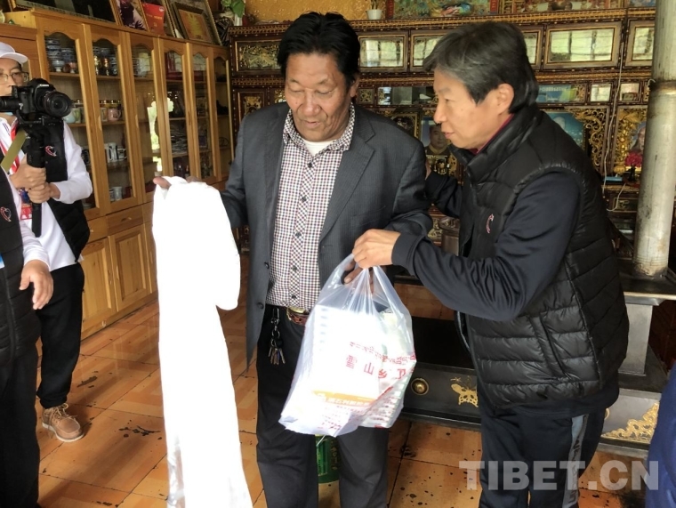 圖為“同心·共鑄中國(guó)心”醫(yī)護(hù)志愿者為德青老人送上慰問(wèn)品 圖片由“同心·共鑄中國(guó)心”組委會(huì)供圖