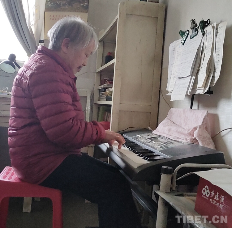 鄧親和,四川省樂山市犍為縣人,出生于1931年,十八軍52師文工隊(duì)?wèi)?zhàn)士。1950年,鄧親和19歲,正值高三,成績優(yōu)異的她不顧家人的勸阻,毅然放棄了繼續(xù)讀書的機(jī)會(huì),踏上了解放西藏的征途,從此在雪域高原上留下了人生最寶貴的青春足跡。初見鄧?yán)蠋煟H切和藹的樣子,給我留下深刻的印象。老人雖然退休多年,但是她的生活仍然格外豐富。據(jù)老人講,她的作息時(shí)間比較規(guī)律,堅(jiān)持做八段錦鍛煉身體,自己做家務(wù),空閑時(shí)間還會(huì)看書看報(bào)、提筆練字,或是彈彈電子琴,唱唱歌等等,生活豐富多彩。此刻,我從她的身上看到了年輕時(shí)鄧親和的神態(tài)與風(fēng)采?;厥啄嵌螎槑V歲月,翻雪山、過草地、穿峽谷、涉冰河……面臨高山缺氧的生命危險(xiǎn),趟越急流冰河的刺骨鉆心,爬冰臥雪、忍饑耐寒,遇艱險(xiǎn)不畏其險(xiǎn),歷困難不以為難,樁樁件件好似一首首雋永的絢麗詩篇,常在她記憶里回蕩,令人難忘。