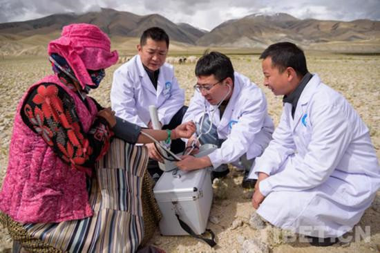 圖為組團(tuán)式醫(yī)療援藏專家在農(nóng)牧區(qū)義診