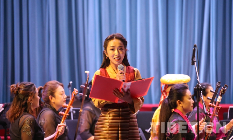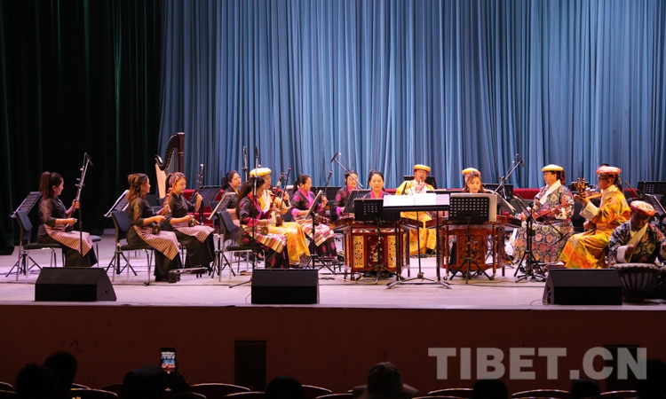 演出在民樂合奏《花好月圓》中正式拉開帷幕,由扎念琴、達瑪鼓、畢旺等藏族傳統(tǒng)樂器演奏的、獨具阿里“宣舞”特色的器樂合作《古格回音》、西藏傳統(tǒng)歌舞堆諧《百美百東》、弦子《藏東神韻》、管弦樂《我的祖國》、女聲獨唱《唱支山歌給黨聽》等共13個精彩紛呈的節(jié)目接連上演,引得現(xiàn)場掌聲陣陣。