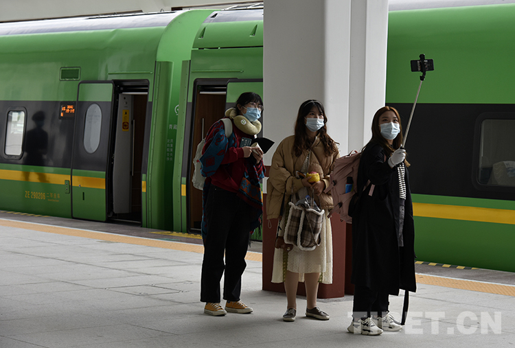 圖為9月25日D8981次動(dòng)車抵達(dá)林芝,乘客拍照留念 攝影:王媛媛